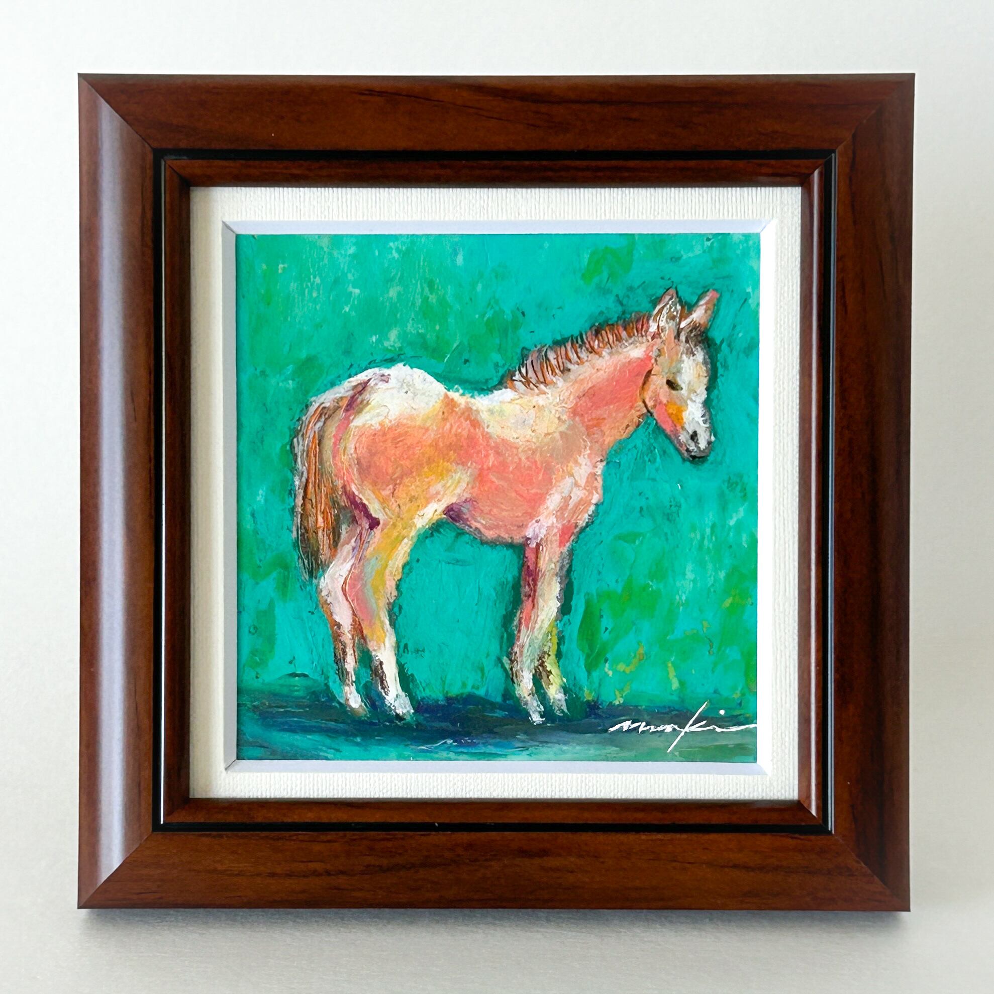 ☆★額装済み、すぐに飾れる、ちいさなうまの絵★☆